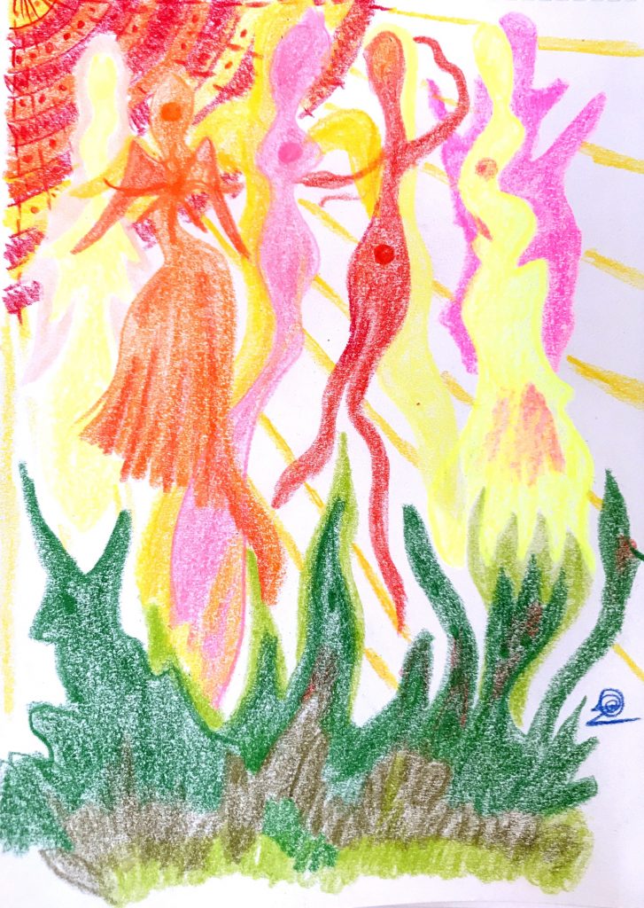 Ca fluturi, libelule, păsări sau pur și simplu, ca și globuri de lumină, culori, sunete, arome sau atingeri diafane.